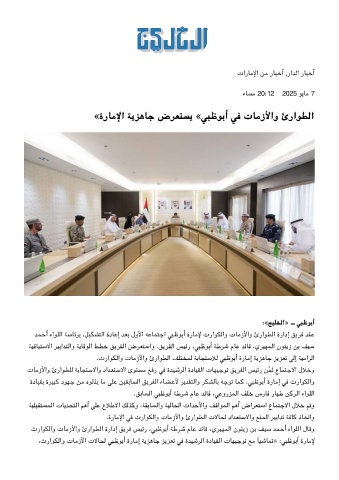«ةرﺎﻣﻹا ﺔﻳﺰﻫﺎﺟ ضﺮﻌﺘﺴﻳ «ﺒﻇﻮﺑأ ﻓ تﺎﻣزﻷاو ئراﻮﻄﻟا