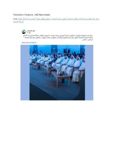 Publication: Facebook – UAE News Arabic Link: طاشنل لامعلأا ةيرارمتسلا ًارايعم ناقلطُي يبظوبأ – ةحصلا ةرئادو يبظوبأ ةراملإ ثراوكلاو تامزلأاو ئراوطلا ةرادإ زكرم ةيحصلا ةياعرلا