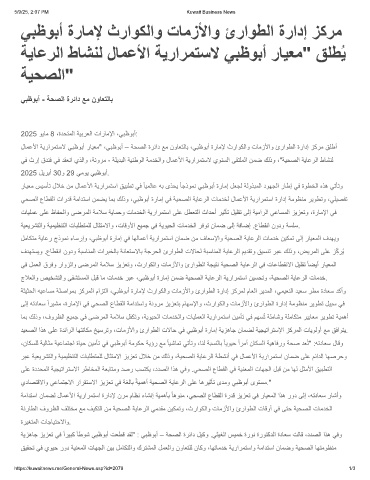 لﺎﻣﻋﻷا ﺔﯾرارﻣﺗﺳﻻ ﻲﺑظوﺑأ رﺎﯾﻌﻣ" ،ﻲﺑظوﺑأ – ﺔﺣﺻﻟا ةرﺋاد ﻊﻣ نوﺎﻌﺗﻟﺎﺑ ،ﻲﺑظوﺑأ ةرﺎﻣﻹ ثراوﻛﻟاو تﺎﻣزﻷاو ئراوطﻟا ةرادإ زﻛرﻣ ﻖﻠطأ