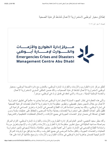 رﺎﯿﻌﻣ» ،ﻲﺒظﻮﺑأ ﺔﺤﺼﻟا ةﺮﺋاد ﻊﻣ نوﺎﻌﺘﻟﺎﺑ ،ﻲﺒظﻮﺑأ ةرﺎﻣﻹ ثراﻮﻜﻟاو تﺎﻣزﻷاو ئراﻮﻄﻟا ةرادإ ﺰﻛﺮﻣ ﻖﻠطأ