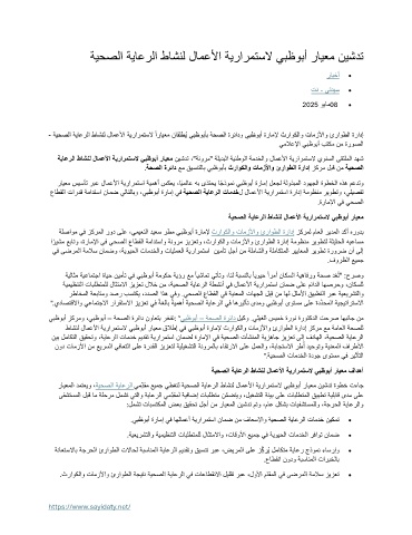 نيب لماكتلا قيقحتو ،ةياعرل ا تامدخ ميدقت ةيرارمتسا نامضل ةراملإا يف ةيحصلا تآشنملا ةيزهاج زيزعت ىلإ فداهلا ،ةيحصلا ةياعرلا