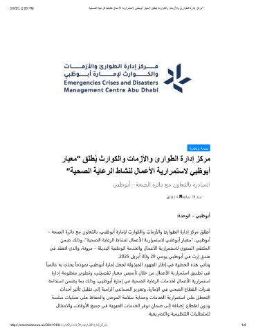 – ﺔﺤﺼﻟا ةﺮﺋاد ﻊﻣ نوﺎﻌﺘﻟﺎﺑ ،ﻲﺒﻇﻮﺑأ ةرﺎﻣإل ثراﻮﻜﻟاو تﺎﻣزألاو ئراﻮﻄﻟا ةرادإ ﺰﻛﺮﻣ ﻖﻠﻃأ