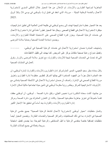 نإ ،ﻲﺒظﻮﺑأ ةرﺎﻣﻹ ثراﻮﻜﻟاو تﺎﻣزﻷاو ئراﻮﻄﻟا ةرادإ ﺰﻛﺮﻤﻟ مﺎﻌﻟا ﺮﯾﺪﻤﻟا ،ﻲﻤﯿﻌﻨﻟا ﺪﯿﻌﺳ ﺮﻄﻣ ةدﺎﻌﺳ لﺎﻗو
