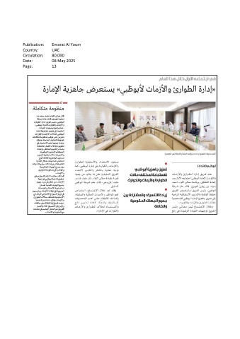 Publication: Emarat Al Youm Country: UAE Circulation: 80,000 Date: 08 May 2025 Page: 13