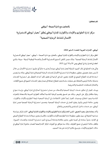 ﺔ�راﺮﻤﺘﺳﻻ ي�ﻇﻮﺑأ رﺎﻴﻌﻣ ، " ي�ﻇﻮﺑأ – ﺔح�ﻟا ةﺮﺋاد ﻊﻣ نوﺎﻌﺘﻟﺎﺑ ، ي�ﻇﻮﺑأ ةرﺎﻣﻹ ثراﻮ�ﻟاو تﺎﻣزﻷاو ئراﻮﻄﻟا ةرادإ ﺰﻛﺮﻣ ﻖﻠﻃأ