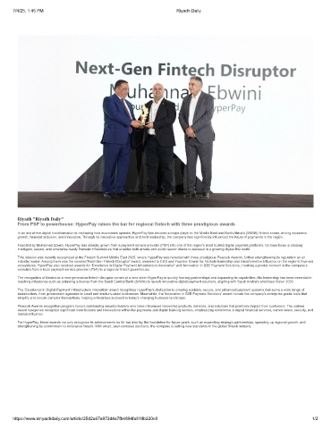 ecosystems. HyperPay also received awards for 'Excellence in Digital Payment Infrastructure Innovation' and 'Innovation in B2B Payment Solutions,' marking a pivotal moment in the company’s