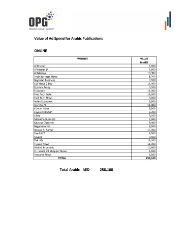 Value of Ad Spend for Arabic Publications