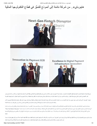 “Next-Gen Fintech Disruptor”،  ً ﺎﻀﯾأ تﺪﺼﺣ ذإ ،ﺪﺤﻟا اﺬھ ﺪﻨﻋ ﺔﻛﺮﺸﻟا تازﺎﺠﻧإ ﻒﻗﻮﺘﺗ ﻢﻟو .ﺔﻘﻄﻨﻤﻟﺎﺑ ﻲﻟﺎﻤﻟا ﺪﮭﺸﻤﻟا ﻞﯿﻜﺸﺗ ةدﺎﻋإ ﻲﻓ ةﺮﺛﺆﻤﻟا ﮫﺘﻤﺼﺑوﺰﯿﻤﺘﻤﻟا يدﺎﯿﻘﻟا ﮫﺠﮭﻨﻟ ً ﺎﺠﯾﻮﺘﺗ ،ﻲﻨﯾﻮﺒﻋ ﺪﻨﮭﻣ يﺬﯿﻔﻨﺘﻟا ﺲﯿﺋﺮﻟاو ﺲﺳﺆﻤﻠﻟ ﺖﺤﻨُﻣ ﻲﺘﻟا