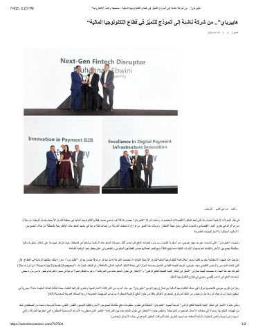 7/4/25, 2:23 PM                        "ﺔﯾﻧورﺗﻛﻟﻹا بﻛاو ﺔﻔﯾﺣﺻ - ﺔﯾﻟﺎﻣﻟا ﺎﯾﺟوﻟوﻧﻛﺗﻟا عﺎطﻗ ﻲﻓ زﱡﯾﻣﺗﻠﻟ جذوﻣﻧأ ﻰﻟإ ﺔﺋﺷﺎﻧ ﺔﻛرﺷ نﻣ .."يﺎﺑرﺑﯾﺎھ