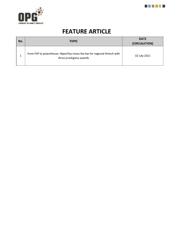 FEATURE ARTICLE DATE No. TOPIC (CIRCULATION) From PSP to powerhouse: HyperPay raises the bar for regional fintech with 1 02 July 2025 three prestigious awards