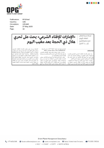 Publication: Al Etihad Country: UAE Circulation: 109,640 Date: 27 May 2025 Page: 16