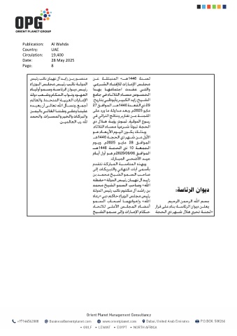 Publication: Al Wahda Country: UAE Circulation: 19,400 Date: 28 May 2025 Page: 8