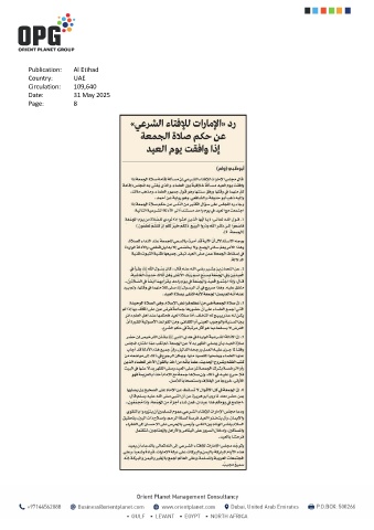 Publication: Al Etihad Country: UAE Circulation: 109,640 Date: 31 May 2025 Page: 8