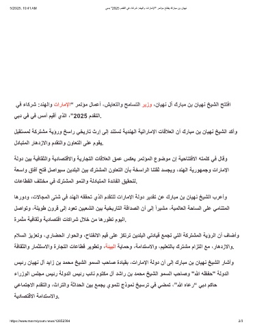 5/26/25, 10:41 AM ﻲﺑدﺑ "2025 مدﻘﺗﻟا ﻲﻓ ءﺎﻛرﺷ :دﻧﮭﻟاو تارﺎﻣﻹا" رﻣﺗؤﻣ ﺢﺗﺗﻔﯾ كرﺎﺑﻣ نﺑ نﺎﯾﮭﻧ