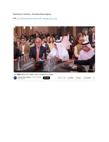 Publication: YouTube – Emirates News Agency Link: يبدب ”2025 مدقتلا يف ءاكرش :دنهلاو تاراملإا“ رمتؤم حتتفي كرابم نب نايهن
