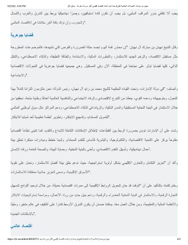 ﺔﺣورطﻣﻟا تﺎﻋوﺿوﻣﻟﺎﻓ ،ﺎھدﮭﺷﻧ ﻲﺗﻟا صرﻔﻟاو ةرورﺿﻟا ﺔﻟﺎﺣ دﺳﺟﺗ موﯾﻟا ﺔﻣﻗ روﺎﺣﻣ نإ" :نﺎﯾﮭﻧ لآ كرﺎﺑﻣ نﺑ نﺎﯾﮭﻧ ﺦﯾﺷﻟا لﺎﻗو