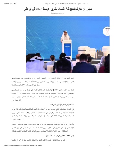 ﻲﺒظ ﻮﺑأ ﻲﻓ 2025 ﻂﺳوﻷا قﺮﺸﻟا دﺎﺼﺘﻗا ﺔﻤﻗ ﺢﺘﺘﻔﯾ كرﺎﺒﻣ ﻦﺑ نﺎﯿﮭﻧ