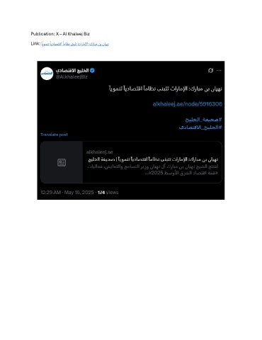 Publication: X – Al Khaleej Biz ً ً ً Link: ايومنت ايداصتقا اماظن ىنبتت تاراملإا :كرابم نب نايهن