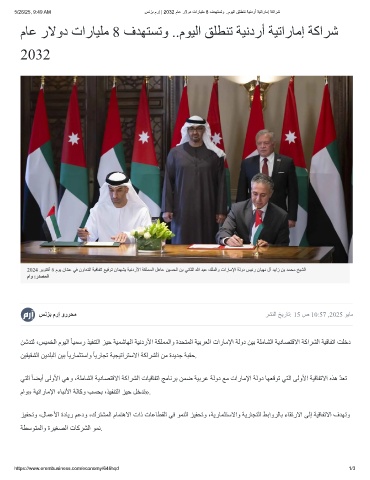 ﻦﺷﺪﺘﻟ ،ﺲﯿﻤﺨﻟا مﻮﯿﻟا ً ﺎﯿﻤﺳر ﺬﯿﻔﻨﺘﻟا ﺰﯿﺣ ﺔﯿﻤﺷﺎﮭﻟا ﺔﯿﻧدرﻷا ﺔﻜﻠﻤﻤﻟاو ةﺪﺤﺘﻤﻟا ﺔﯿﺑﺮﻌﻟا تارﺎﻣﻹا ﺔﻟود ﻦﯿﺑ ﺔﻠﻣﺎﺸﻟا ﺔﯾدﺎﺼﺘﻗﻻا ﺔﻛاﺮﺸﻟا ﺔﯿﻗﺎﻔﺗا ﺖﻠﺧد