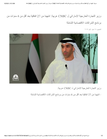 5/26/25, 9:53 AM ةﺎﻧﻗ CNBC ل ﻲﺗارﺎﻣﻹا ﺔﯾﺟرﺎﺧﻟا ةرﺎﺟﺗﻟا رﯾزو | ﺔﯾﺑرﻋ CNBC ﺔﻠﻣﺎﺷﻟا ﺔﯾدﺎﺻﺗﻗﻻا تﺎﻛارﺷﻟا ﺞﻣﺎﻧرﺑ نﻣ تاوﻧﺳ 4 نﻣ لﻗأ دﻌﺑ ﺔﯾﻗﺎﻔﺗا 27 نﻣ ﺎﻧﯾﮭﺗﻧا :ﺔﯾﺑرﻋ