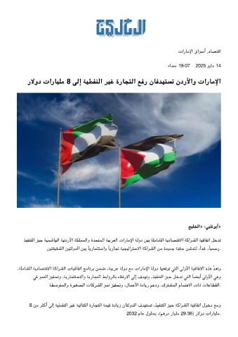 رﻻود تارﺎﻴﻠﻣ 8 ﻟإ ﺔﻴﻄﻔﻨﻟا ﺮﻴﻏ ةرﺎﺠﺘﻟا ﻊﻓر نﺎﻓﺪﻬﺘﺴﺗ ندرﻷاو تارﺎﻣﻹا