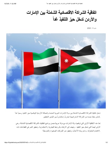 5/23/25, 11:22 AM ًادﻏ ذﯾﻔﻧﺗﻟا زﯾﺣ لﺧدﺗ ندرﻷاو تارﺎﻣﻹا نﯾﺑ ﺔﻠﻣﺎﺷﻟا ﺔﯾدﺎﺻﺗﻗﻻا ﺔﻛارﺷﻟا ﺔﯾﻗﺎﻔﺗا