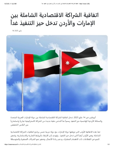 5/23/25, 11:22 AM ًادﻏ ذﯾﻔﻧﺗﻟا زﯾﺣ لﺧدﺗ ندرﻷاو تارﺎﻣﻹا نﯾﺑ ﺔﻠﻣﺎﺷﻟا ﺔﯾدﺎﺻﺗﻗﻻا ﺔﻛارﺷﻟا ﺔﯾﻗﺎﻔﺗا - Nas News UAE