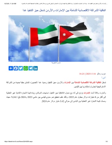 ﺔﻛاﺮﺸﻟا ﻦﻣ ةﺪﯾﺪﺟ ﺔﺒﻘﺣ ﻦﺷﺪﺘﻟ ،/ﺲﯿﻤﺨﻟا/ اﺪﻏ ،ﺎﯿﻤﺳر ﺬﯿﻔﻨﺘﻟا ﺰﯿﺣ ،ندرﻷاو تارﺎﻣﻹا ﻦﯿﺑ ﺔﻠﻣﺎﺸﻟا ﺔﯾدﺎﺼﺘﻗﻻا ﺔﻛاﺮﺸﻟا ﺔﯿﻗﺎﻔﺗا ﻞﺧﺪﺗ