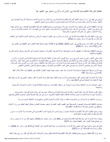 5/23/25, 11:24 AM ًادﻏ ذﯾﻔﻧﺗﻟا زﯾﺣ لﺧدﺗ ندرﻷاو تارﺎﻣﻹا نﯾﺑ ﺔﻠﻣﺎﺷﻟا ﺔﯾدﺎﺻﺗﻗﻻا ﺔﻛارﺷﻟا ﺔﯾﻗﺎﻔﺗا - Fana News
