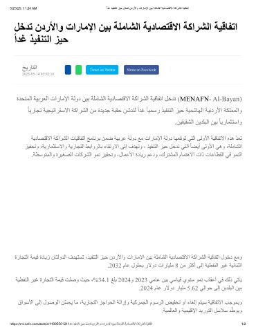 5/23/25, 11:24 AM ًادﻏ ذﯾﻔﻧﺗﻟا زﯾﺣ لﺧدﺗ ندرﻷاو تارﺎﻣﻹا نﯾﺑ ﺔﻠﻣﺎﺷﻟا ﺔﯾدﺎﺻﺗﻗﻻا ﺔﻛارﺷﻟا ﺔﯾﻗﺎﻔﺗا
