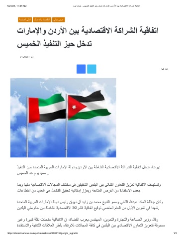 5/23/25, 11:28 AM زوﯾﻧ ﺎﻧﺗرﯾد - سﯾﻣﺧﻟا ذﯾﻔﻧﺗﻟا زﯾﺣ لﺧدﺗ تارﺎﻣﻹاو ندرﻷا نﯾﺑ ﺔﯾدﺎﺻﺗﻗﻻا ﺔﻛارﺷﻟا ﺔﯾﻗﺎﻔﺗا