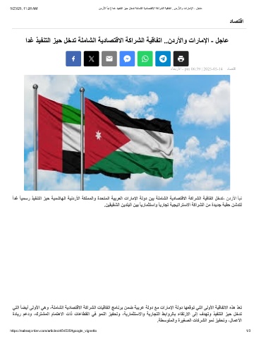 5/23/25, 11:28 AM ندرﻷا ﺄﺑﻧ | ادﻏ ذﯾﻔﻧﺗﻟا زﯾﺣ لﺧدﺗ ﺔﻠﻣﺎﺷﻟا ﺔﯾدﺎﺻﺗﻗﻻا ﺔﻛارﺷﻟا ﺔﯾﻗﺎﻔﺗا ..ندرﻷاو تارﺎﻣﻹا - لﺟﺎﻋ