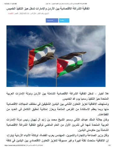5/23/25, 11:29 AM رﺎﺑﺧا ﻼھ – سﯾﻣﺧﻟا ذﯾﻔﻧﺗﻟا زﯾﺣ لﺧدﺗ تارﺎﻣﻹاو ندرﻷا نﯾﺑ ﺔﯾدﺎﺻﺗﻗﻻا ﺔﻛارﺷﻟا ﺔﯾﻗﺎﻔﺗا