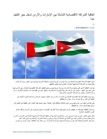نشدتل ادغ ايمسر ذيفنتلا زيح ةيمشاهلا ةيندرلأا ةكلمملاو ةدحتملا ةيبرعلا تاراملإا ةلود نيب ةلماشلا ةيداصتقلاا ةكارشلا ةيقافتا لخدت