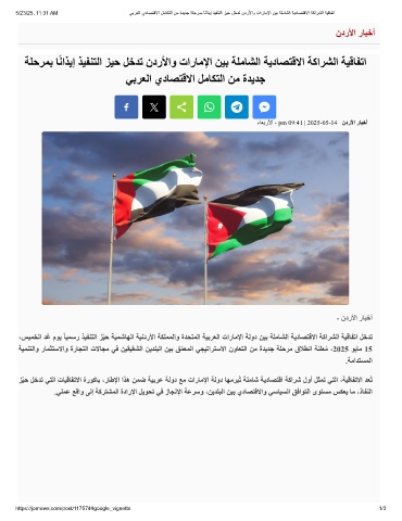 5/23/25, 11:31 AM ﻲﺑرﻌﻟا يدﺎﺻﺗﻗﻻا لﻣﺎﻛﺗﻟا نﻣ ةدﯾدﺟ ﺔﻠﺣرﻣﺑ ﺎًﻧاذﯾإ ذﯾﻔﻧﺗﻟا زﯾﺣ لﺧدﺗ ندرﻷاو تارﺎﻣﻹا نﯾﺑ ﺔﻠﻣﺎﺷﻟا ﺔﯾدﺎﺻﺗﻗﻻا ﺔﻛارﺷﻟا ﺔﯾﻗﺎﻔﺗا