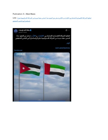 Publication: X – Wam News Link: ايراجت ةيجيتارتسلاا ةكارشلا نم ةديدج ةبقح نشدتل ،ادغ ذيفنتلا زيح لخدت ندرلأا# و تاراملإا# نيب ةلماشلا ةيداصتقلاا ةكارشلا ةيقافتا نيقيقشلا نيدلبلا نيب ايرامثتساو