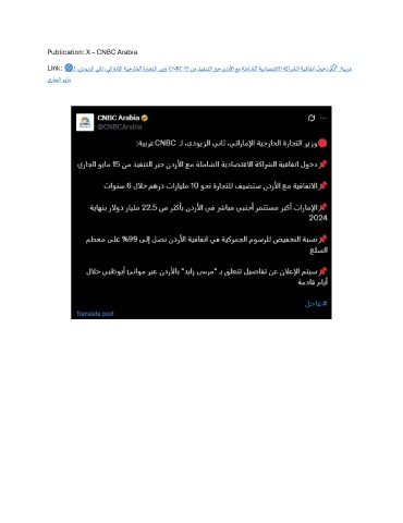 Publication: X – CNBC Arabia Link: ـل ،يدويزلا يناث ،يتاراملإا ةيجراخلا ةراجتلا ريزو CNBC 15 نم ذيفنتلا زيح ندرلأا عم ةلماشلا ةيداصتقلاا ةكارشلا ةيقافتا لوخد :ةيبرع يراجلا ويام