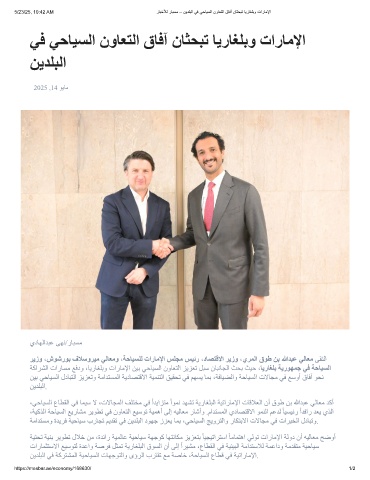 5/23/25, 10:42 AM رﺎﺑﺧﻸﻟ رﺎﺑﺳﻣ – نﯾدﻠﺑﻟا ﻲﻓ ﻲﺣﺎﯾﺳﻟا نوﺎﻌﺗﻟا قﺎﻓآ نﺎﺛﺣﺑﺗ ﺎﯾرﺎﻐﻠﺑو تارﺎﻣﻹا