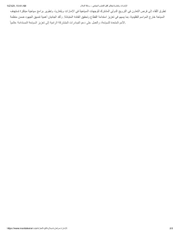 فدﮭﺗﺳﺗ ةرﻛﺗﺑﻣ ﺔﯾﺣﺎﯾﺳ ﺞﻣارﺑ رﯾوطﺗو ،ﺎﯾرﺎﻐﻠﺑو تارﺎﻣﻹا ﻲﻓ ﺔﯾﺣﺎﯾﺳﻟا تﺎﮭﺟوﻠﻟ كرﺗﺷﻣﻟا ﻲﻟودﻟا ﺞﯾورﺗﻟا ﻲﻓ نوﺎﻌﺗﻟا صرﻓ ﻰﻟإ ءﺎﻘﻠﻟا قرطﺗ