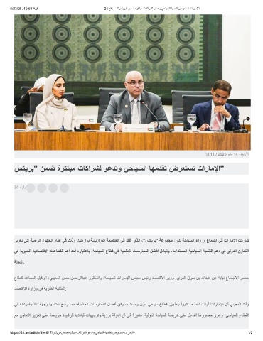 ﻊﻣ نوﺎﻌﺗﻟا زﯾزﻌﺗ ﻰﻠﻋ ﺔﺻﯾرﺣ ةدﯾﺷرﻟا ﺎﮭﺗدﺎﯾﻗ تﺎﮭﯾﺟوﺗو ﺔﯾؤرﺑ ﺔﻟودﻟا نأ ﻰﻟإ ًارﯾﺷﻣ ،ﺔﯾﻟودﻟا ﺔﺣﺎﯾﺳﻟا ﺔطﯾرﺧ ﻰﻠﻋ لﻋﺎﻔﻟا ﺎھروﺿﺣ ززﻋو ،ﻲﺣﺎﯾﺳﻟا عﺎطﻘﻟا
