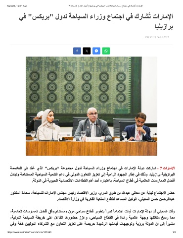 5/23/25, 10:51 AM 7 تارﺎﻣﻻا | رادﻟا رﺎﺑﺧأ | ﺎﯾﻠﯾزارﺑ ﻲﻓ "سﻛﯾرﺑ" لودﻟ ﺔﺣﺎﯾﺳﻟا ءارزو عﺎﻣﺗﺟا ﻲﻓ كرﺎﺷُﺗ تارﺎﻣﻹا