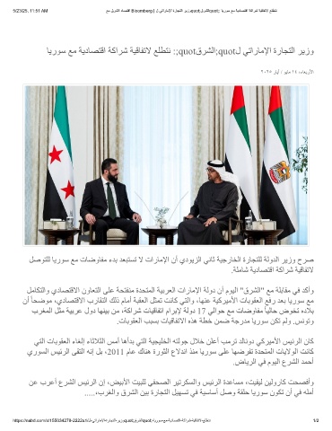5/23/25, 11:51 AM ﻊﻣ قرﺷﻟا دﺎﺻﺗﻗا Bloomberg | ل ﻲﺗارﺎﻣﻹا ةرﺎﺟﺗﻟا رﯾزوquot;قرﺷﻟاquot;: ﺎﯾروﺳ ﻊﻣ ﺔﯾدﺎﺻﺗﻗا ﺔﻛارﺷ ﺔﯾﻗﺎﻔﺗﻻ ﻊﻠطﺗﻧ