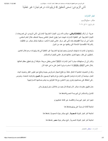 ـﻟ تﺎﺤﯾﺮﺼﺗ ﻲﻓ ،يدﻮﯾﺰﻟا ﻲﻧﺎﺛ ،ﻲﺗارﺎﻣﻹا ﺔﯿﺟرﺎﺨﻟا ةرﺎﺠﺘﻟا ﺮﯾزو ﺪﻛأ :ﺮﺷﺎﺒﻣ -ﻲﺒظﻮﺑأCNBC مﺎﻗرأ نأ ،ﺔﯿﺑﺮﻋ