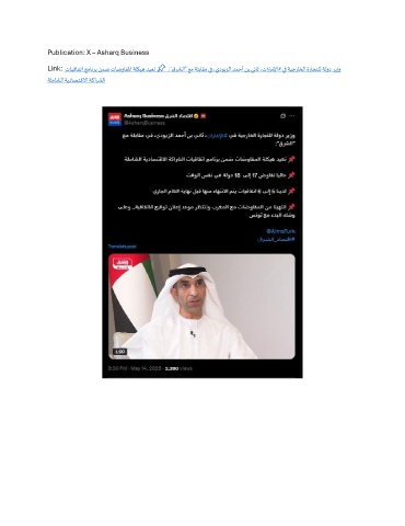 Publication: X – Asharq Business Link: تايقافتا جمانرب نمض تاضوافلما ةلكيه ديعن :"قرشلا" عم ةلباقم يف ،يدويزلا دمحأ نب يناث ،تاراملإا# يف ةيجراخلا ةراجتلل ةلود ريزو ةلماشلا ةيداصتقلاا ةكارشلا