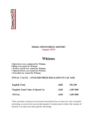 TOTAL VALUE - ENGLISH PRESS RELEASES IN UAE AED.