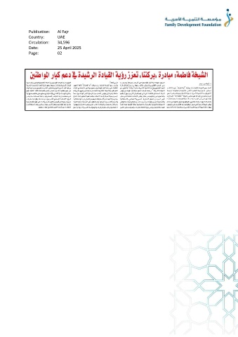 Publication: Al Fajr Country: UAE Circulation: 34,596 Date: 25 April 2025 Page: 02