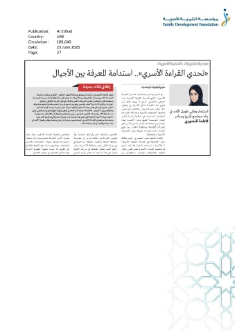 Publication: Al Etihad Country: UAE Circulation: 109,640 Date: 25 June 2025 Page: 27
