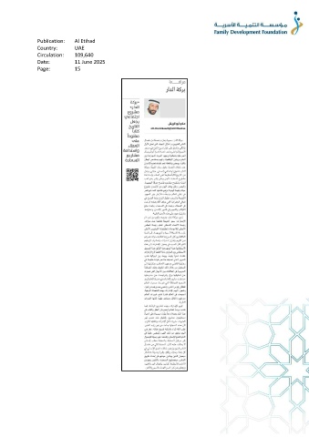 Publication: Al Etihad Country: UAE Circulation: 109,640 Date: 11 June 2025 Page: 15