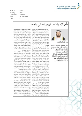 Publication: Al Etihad Country: UAE Circulation: 109,640 Date: 03 June2025 Page: 21