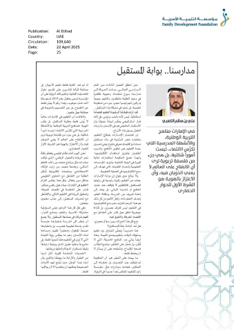 Publication: Al Etihad Country: UAE Circulation: 109,640 Date: 22 April 2025 Page: 25